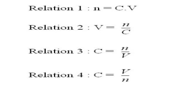 La relation liant la concentration C, le volume V et la quantité de matière n est ...